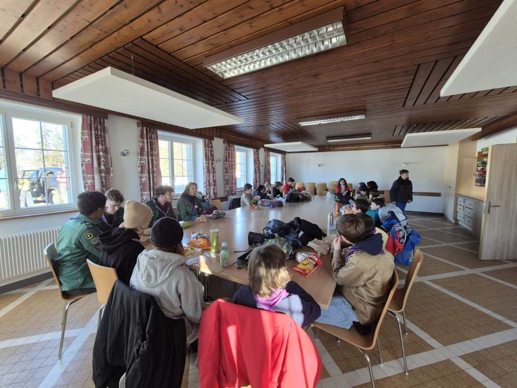 Le groupe s’est réuni à Auvernier pour prendre le car en direction du chalet de Retemberg, situé à Vicques, dans le Jura. Une fois arrivés, nous avons pris le temps de déguster notre pique-nique avant de nous lancer dans la création de la charte de camp.