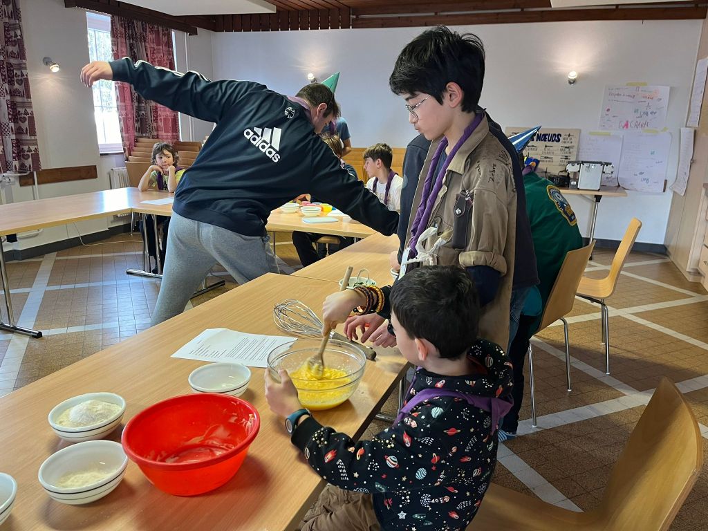 Vers midi, nous avons savouré un délicieux repas composé de pâtes au pesto accompagnée d’une salade fraîche, un festin qui a comblé nos appétits. L’après-midi, les tâches ont été réparties : certains responsables sont restés au chalet pour finaliser le rangement, tandis que d’autres ont occupé les enfants à l’extérieur avec des jeux amusants et dynamiques.